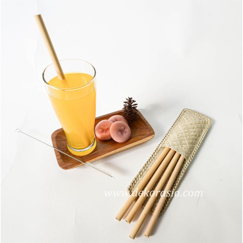 4 bamboo straws | size d 7-9 mm | 1 Jearami Bambu Bag with Type C Container | 1 stainless steel cleaning brush