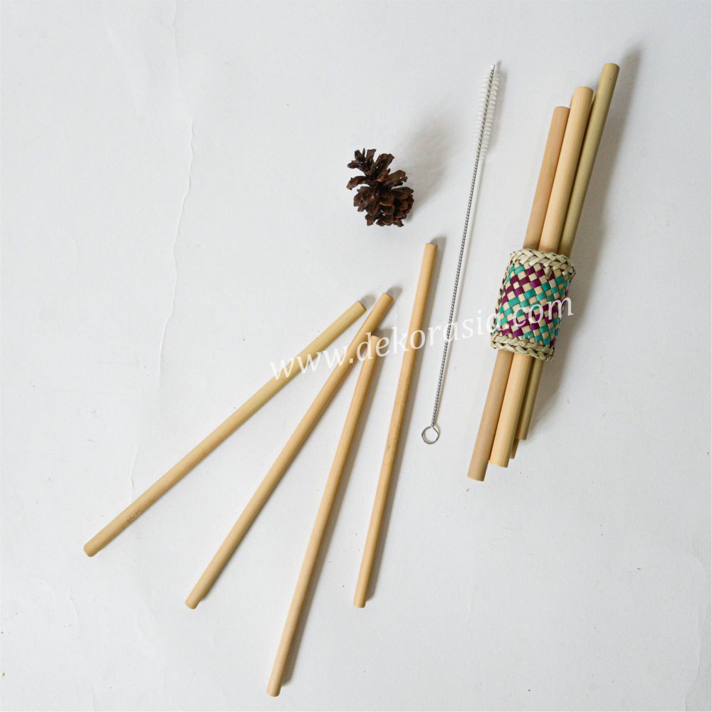 5 pieces of bamboo straws | size d 9-10 mm | 1 pretty napkin ring | 1 stainless steel cleaning brush