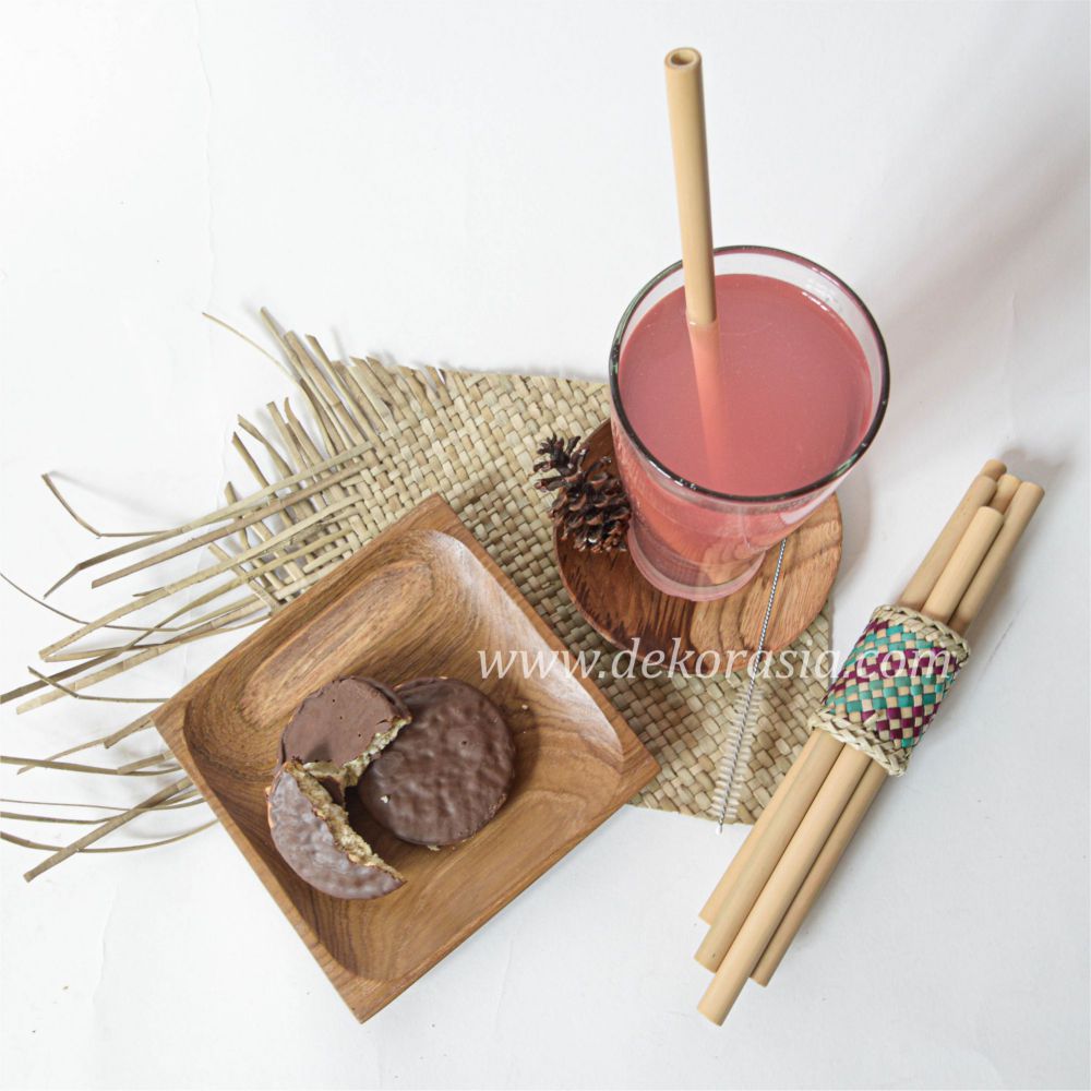 Bamboo Straw Set with Bamboo Napkin Ring Type A in collaboration of red and blue so it becomes a container that looks pretty to look at. They are easy to clean with the stainless steel brush provided. This Bamboo Straw Set with Beautiful Type A Bamboo Napkin Ring is perfect for traveling as it is lightweight and minimalist to put in your bag.