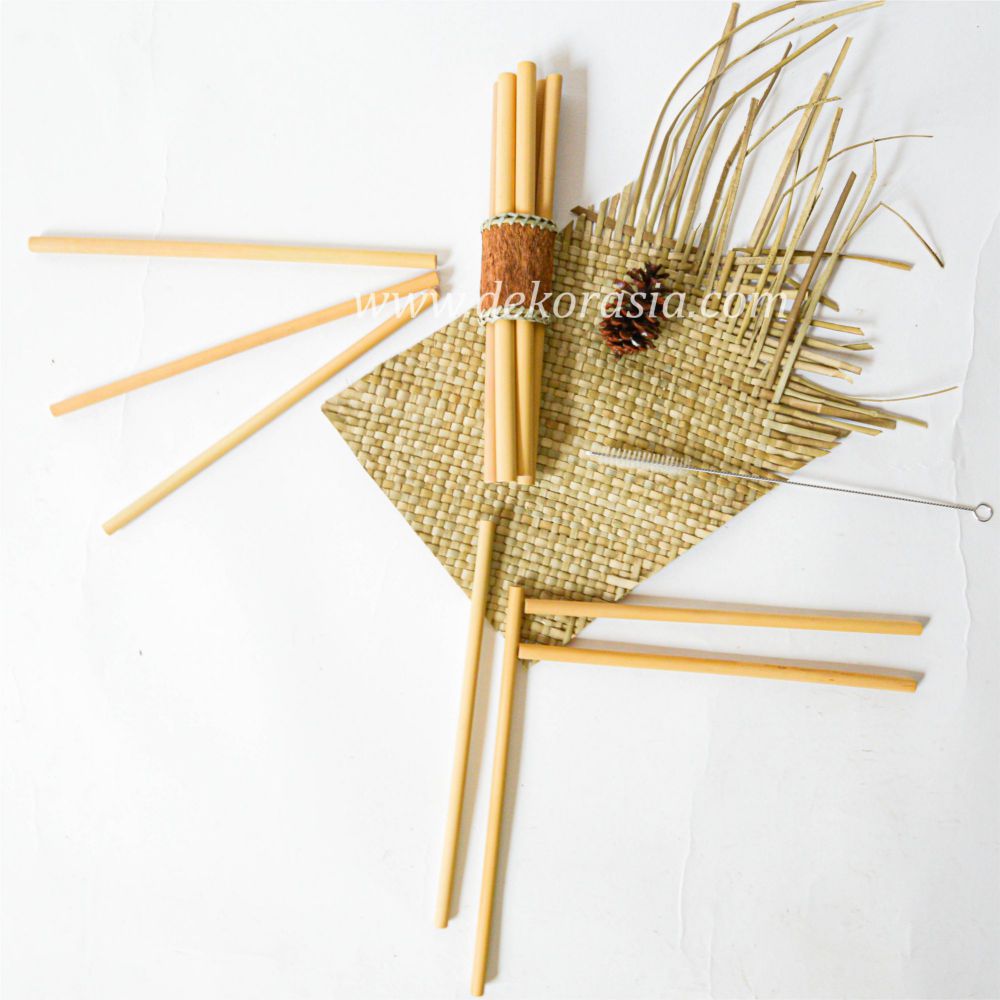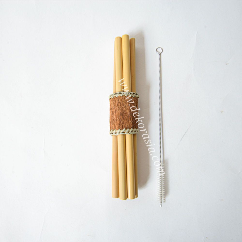 Bamboo Straw Set with Bamboo Napkin Ring Type D with natural orange-brown color so that it becomes a container that looks beautiful to look at. They are easy to clean with the stainless steel brush provided. Bag