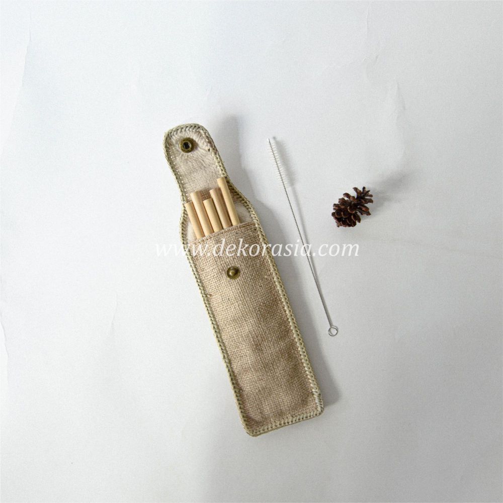 5 pieces of bamboo straws | size d 9-10 mm | 1 Jearami Bambu Bag with Beautiful Button Box | 1 stainless steel cleaning brush